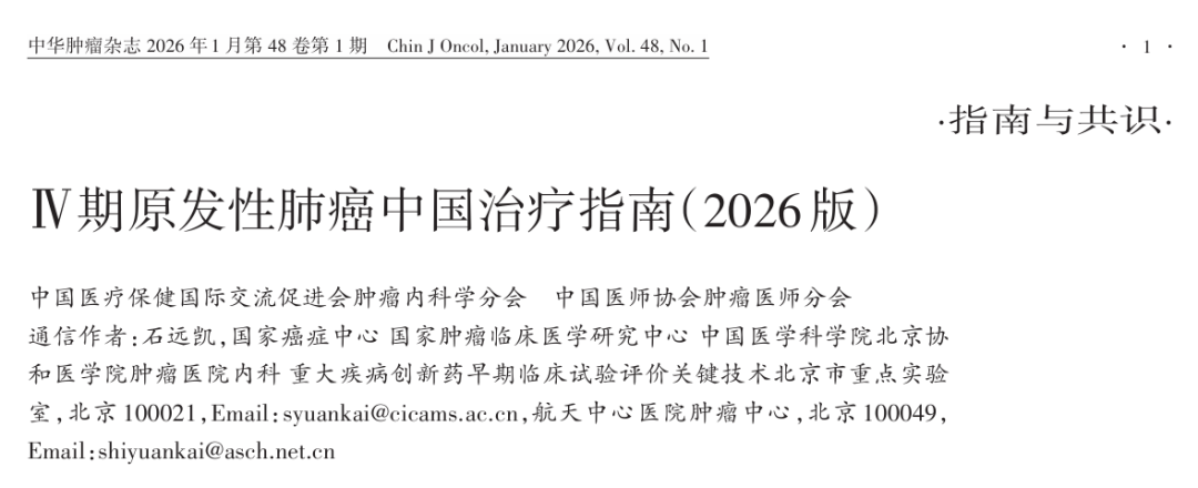 《Ⅳ期原发性肺癌中国治疗指南(2026版)》明确指出:
